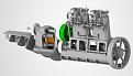 Progress on the drive train. One has to appreciate the compact design, where the frame of the electric motor also supports the gears. The gear on the Otto motor side has a friction clutch. When engaged, the upper shaft is coupled to the combustion engine and drives the prop and the electric motor as dynamo. When open, the electric motor drives the upper shaft via the rear gear. Clever! But: The coarse and spur-toothed gears without housings must have caused a hell of a noise. And no noise suppression bulkhead between engines and crew....