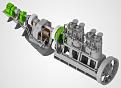 More work on the drive train and the auxiliary equipment. The air compressor and the main bilge pump didn't have their own motors but were driven by the man drive train.I designed the bilge pump (upper right) and the air compressor (lower left) with help of the Lambert plans and very limited additional info. There is one photo showing the edge of the pump and nothing about the compressor. So there is guesswork involved. For the compressor I lent the design of a steam driven compressor of a locomotive. Astonishingly the cylinders fit quite well in the contours shown in the lambert plans....