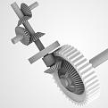 More work on the drive train and the auxiliary equipment. The air compressor and the main bilge pump didn't have their own motors but were driven by the man drive train. The feed to the pump and the compressor was accomplished by a bevel gear located at the upper main gear. The respective axis was tilted upwards and went through a friction clutch into two additional bevel gears that drove the drive axis of the auxiliary equipment. There were dog-couplings between the respective bevel gear and the pump and compressor. Those will be designed next....