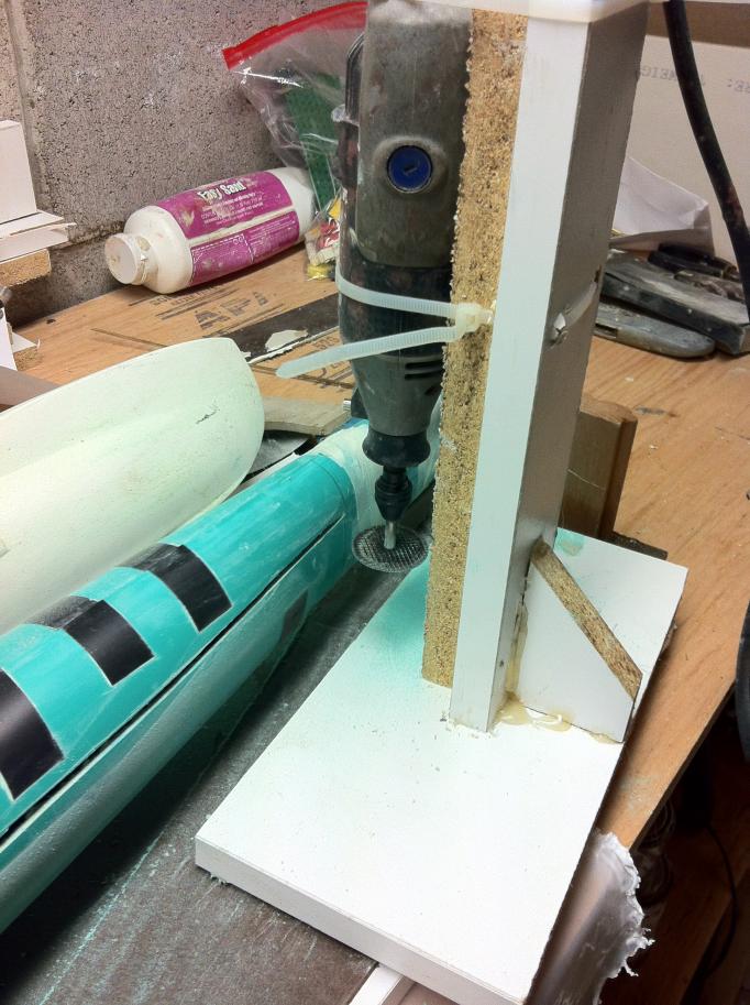 My device wasn't even the best, and I could have improved on it, but I simply strapped my Dremel onto a stand made of MDF and hot melt glue.