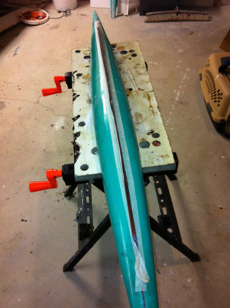 1. Drill some pilot holes through hull into keel; positioned below; then drill some stainles screws into the keel from inside the hull.