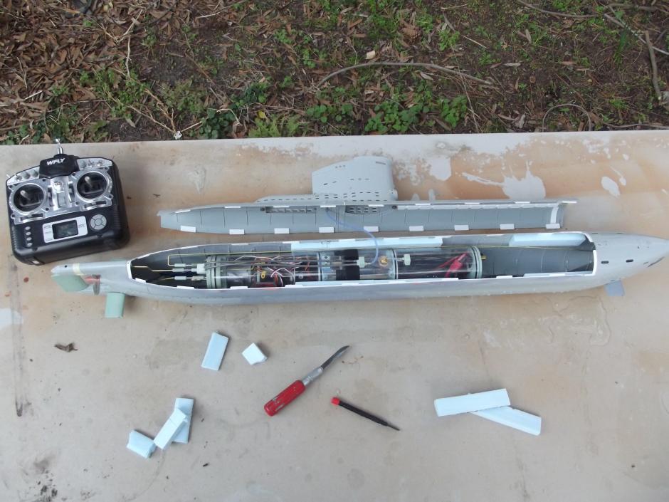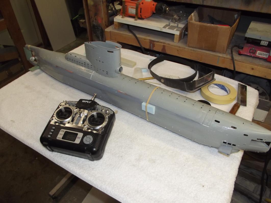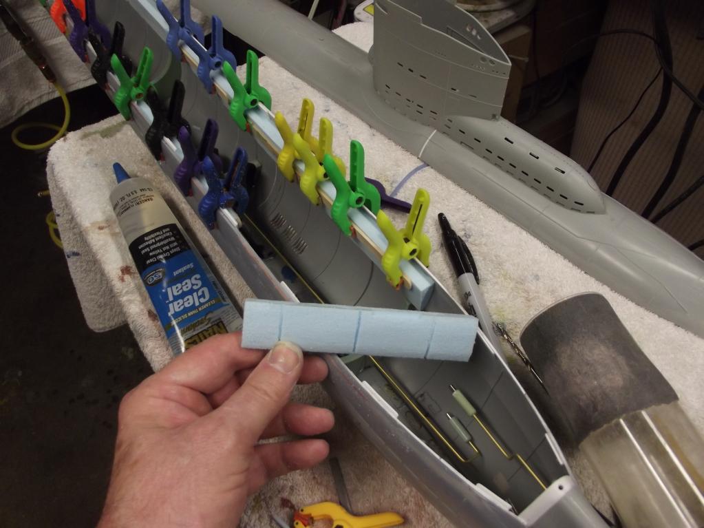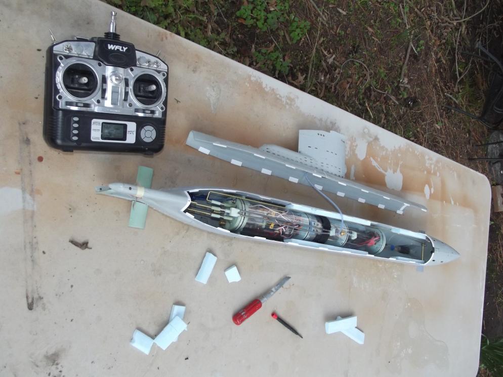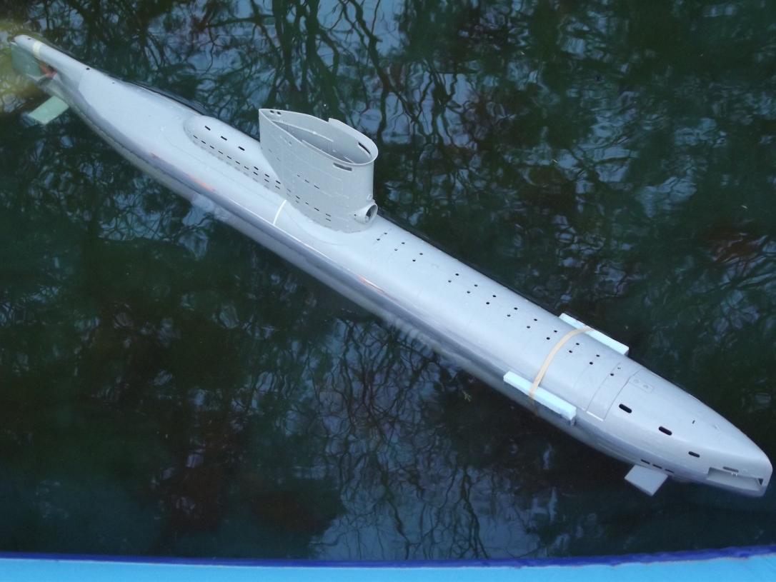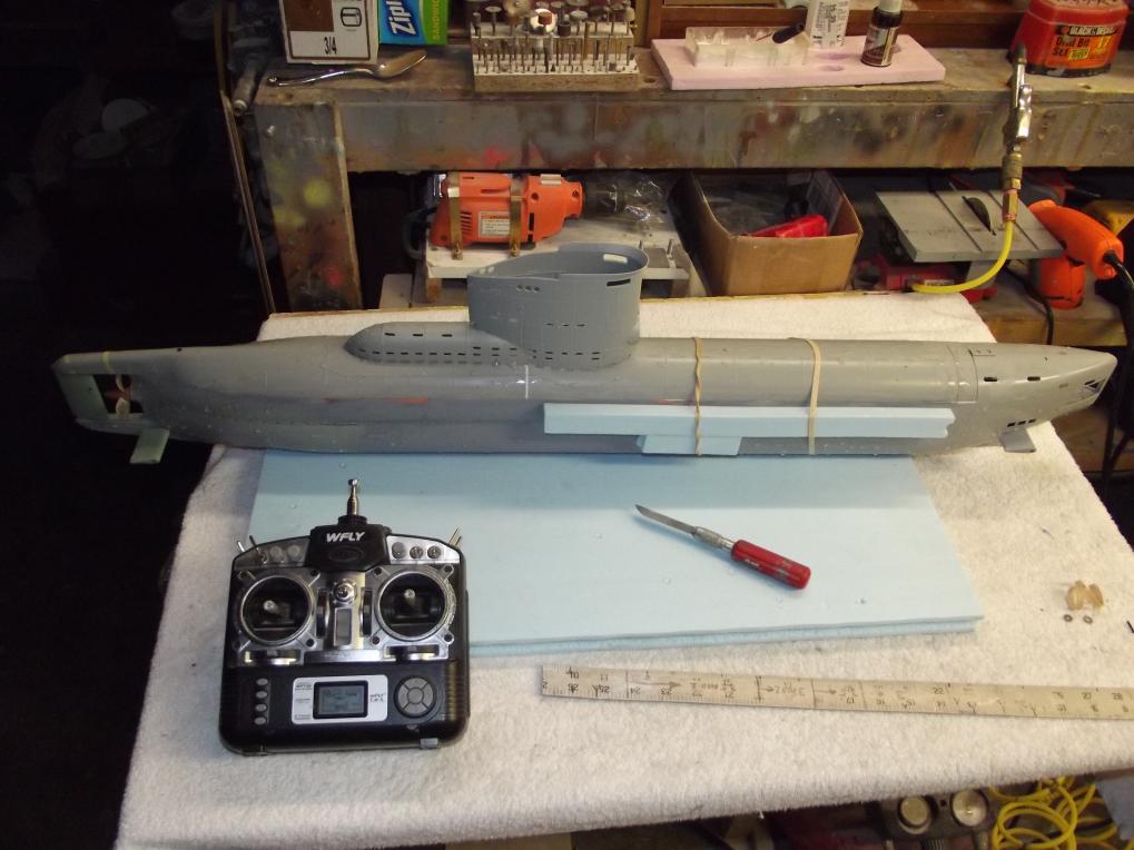 Had the thing in the water last night and this morning. I'm in the "where the hell does the foam go now!??? phase of trimming. Pictures tonight/early morning, guys. The SD's ballast tank seems to be the right size, but won't be sure till I put all the little above-waterline detail parts aboard for the final trim outings. If all goes well, I'll have this thing in the lake tomorrow.