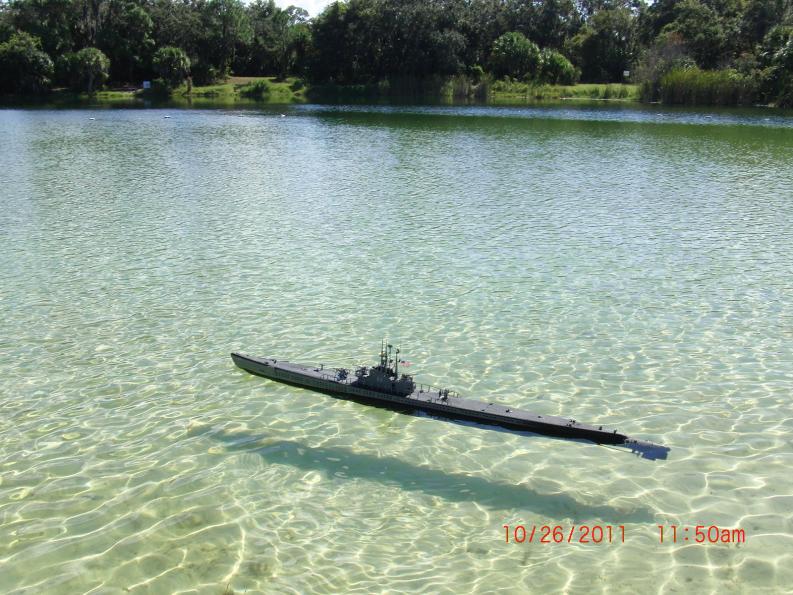IMO, and as previously mentioned, the boat runs reasonably well out on the pond, as I'm hoping continued success with the latest instalation of a stand alone BEC , which has recently been incorporated into the electronics and suggested by (Subculture)-Andy Lawrnce, Dave Meriman, and others on this site, this to further avert the posibility of electrical issues relating to the draw of power off the various electronic devises within the model itself, and rather than depending on a bec which simply may have a low Amp output. Some ESC's on the market today do not specify the output amperage of the BEC incorporated within or made to handle multiple devises operating at the same time, rudder, stern planes, dive planes, and possibly a pump or ballast servo.