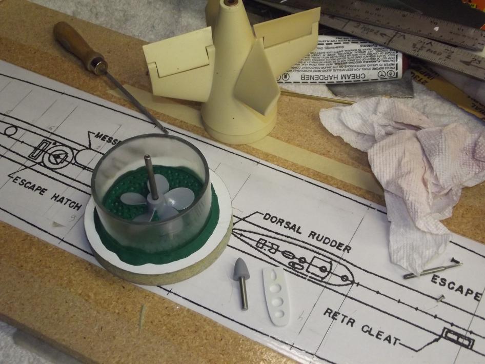 Yeah, that's one of the old Sub-Tech vacuformed hull. I'm assembling it to qualify the new fittings I'm working up for a new Caswell-Merriman kit. Note the phase-3 stern and dorsal rudder.