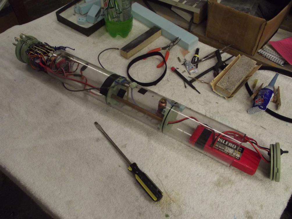 Anyway -- as you can see I've qualified the 'new' 3" SD in this thing. Works like a charm. Well along getting the model trimmed out. Will finish that task tomorrow morning. Maybe there will be time to take it to the local Dive Shop pool for some video. We'll see.