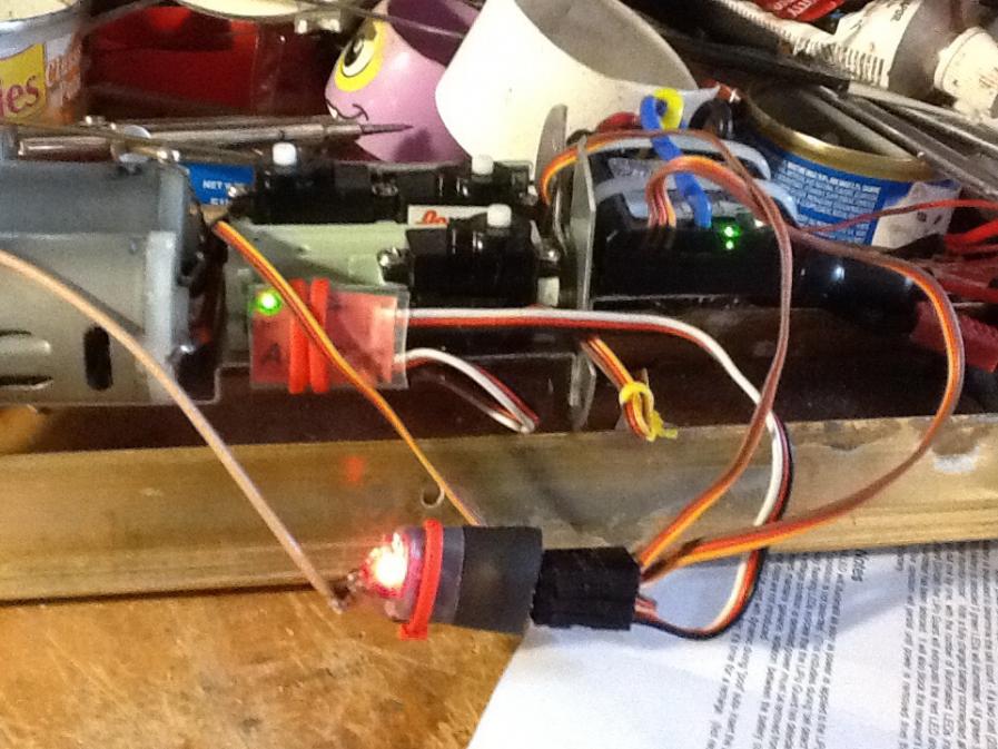 HOOO YAH!! just decided to flip all the rx plugs and boom All Good. Just like the first parachute jump after packing your own chute that you put together from parts. You'll never know if it works unless you grab ahold of yer balls and step out the door, of a perfectly good aircraft. I got lites and bells and whistles all over the machine now. The servos and shafts go crazy. Press the viper set button within the two second blinking time. Green lite on th ADF2 solid red on the transmitter no lights on the lypo guard, at this point.Click image for larger version