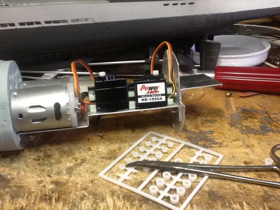 I do have a single motor two shaft that I could use but, this driver is more than adiquate for the light revell boat, for now. It could go in one of my scratch builts,which are twice as heavy and harder to move the mass through the water. I would suspect, a reduction of prop pitch would do the same thing. Not that I would tweek them. I was thinking , if you used the plastic ones as the plug mold, then you are getting the dynamic effect of the full scale boat's, design. The full scale type IXs shaft speeds were from 470 to 490 rpm, the boats were a thousand tons or so. If you scaled that down proportionally to 1/72 it would be rediculously slow, and heavy. Hmmm 1/72 of a thousand tons....mighty heavy model ya got there Kid. What did you use for balast, an anvel?