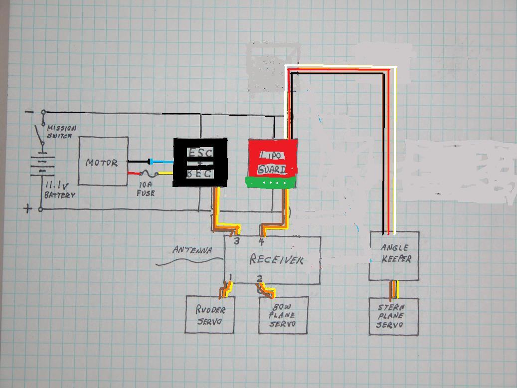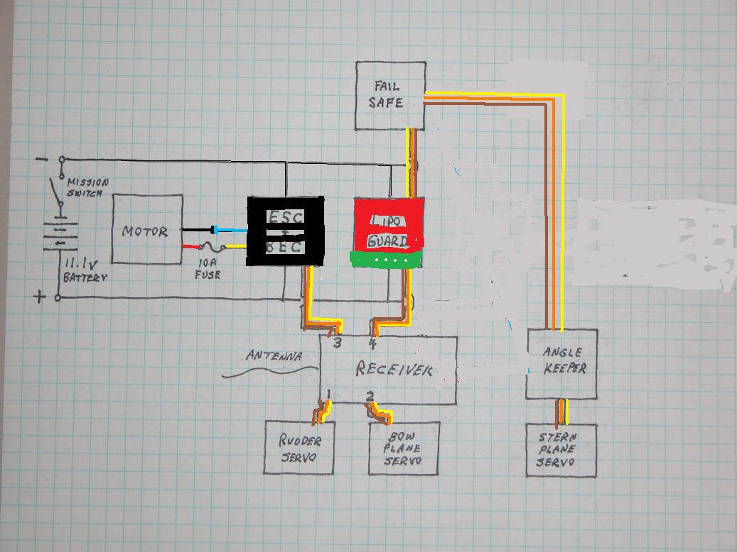 ID:	97592 Here's how you wire up things up there to the mission switch. In your case (using Kevin's magnetically turned on/off latching relay) substitute his unit for the toggle-switch shown. Wipe your external magnet against the wet-side face of the forward bulkhead to turn the system on and off.