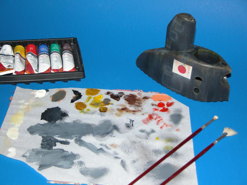 I use acrylac enamal automotive primer over the Plastic. It doesnt have any effect from the keetone on the plastic and serves as a base coat. I dont have to wipe down the plastic with the solvent for the mold release. After the primer, some waterbase acrylacs seem to be durable to ultraviolet light and adhear to the primer well. You can seal the paint with matt clear, but I haven noticed any differance, with or without. Styrene?? Keetone? halfway to C-4. Use to indoctronate Boots with the "Go get me this here styrofoam cup full of that stuff out in the paintlocker drums that has the lable MEK, and see how fast you can get it back here" "and dont forget to lock up the drum before you leave"