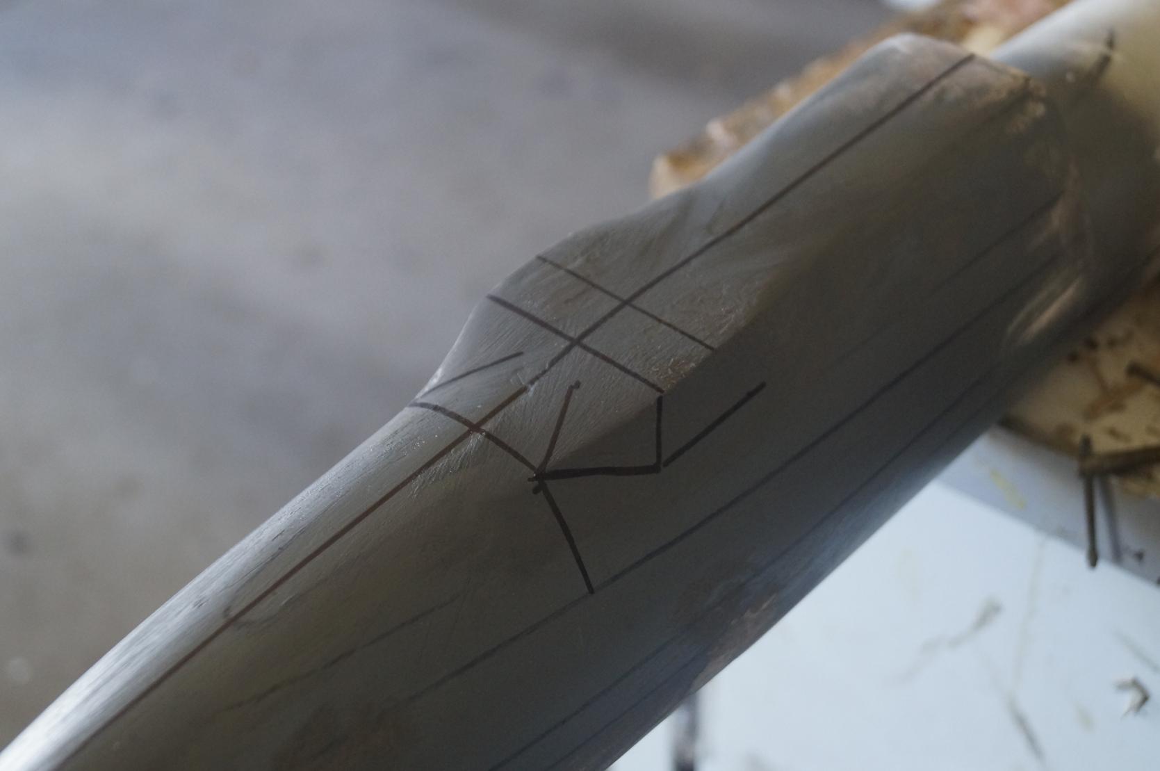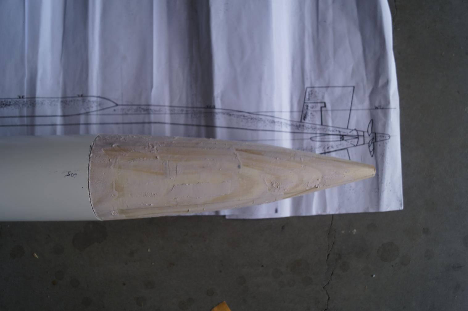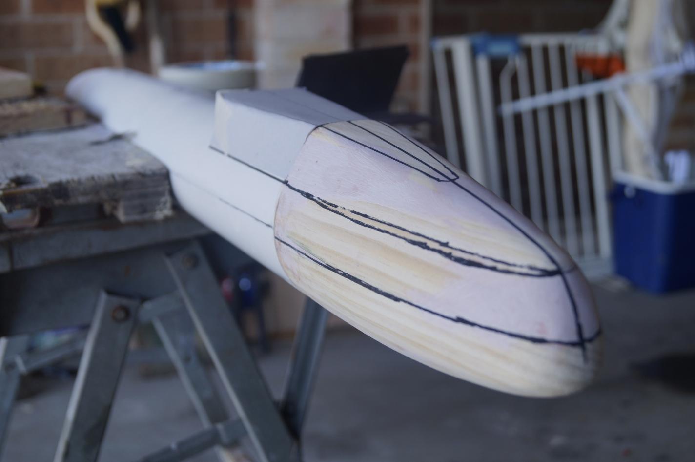 This would take some subtle work with the spoke shave and a light bit of sandpaper here and there. In the meantime making sure that the oval shape then blended smoothly with the round section of the PVC pipe.