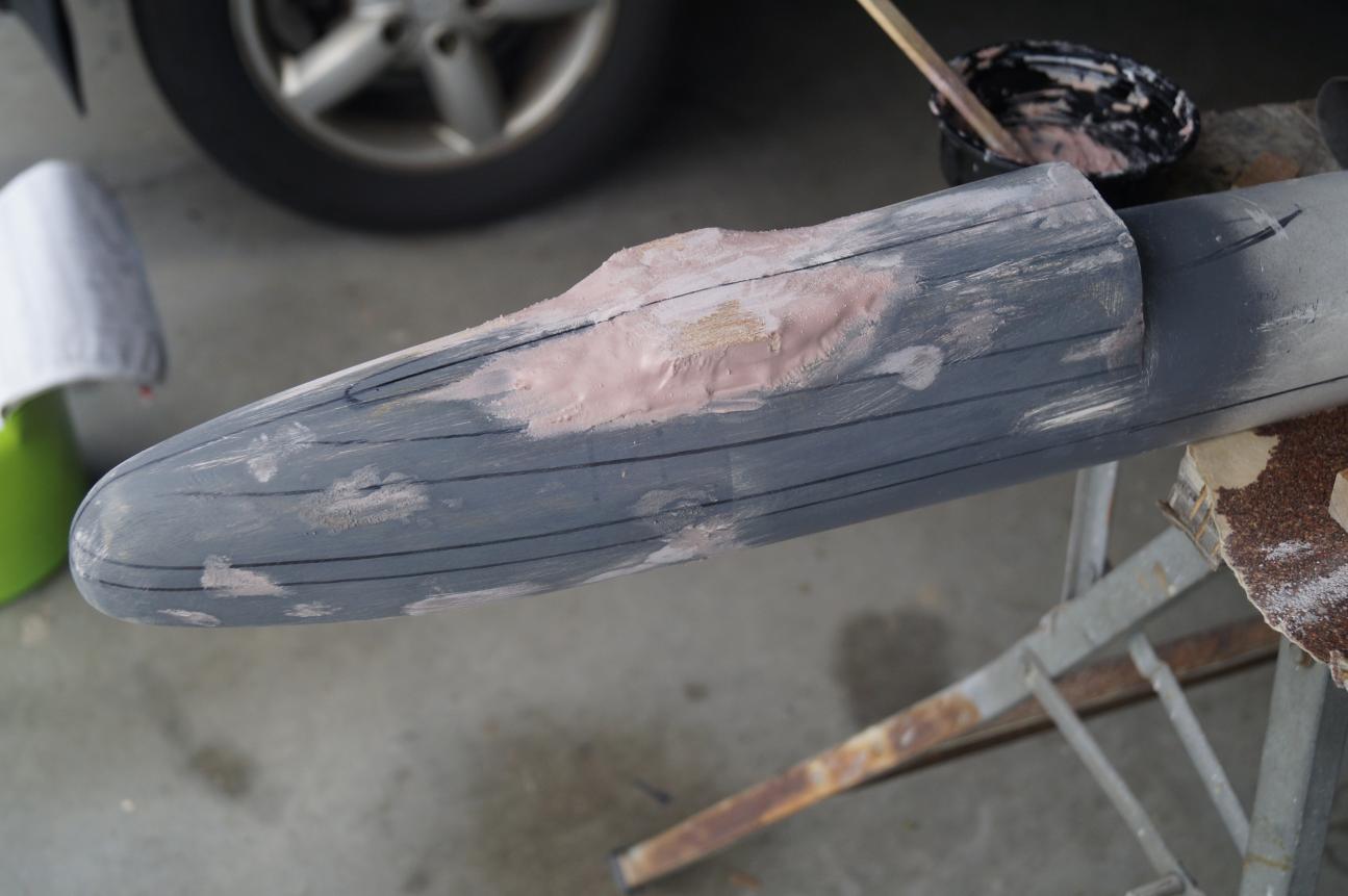 So heaps of sanding and using profile cut outs to get the symmetry right has taken a long time. Weeks have gone by and I might get a little time on Saturday arvo or Sunday to work on the beast. I am finding that the primer has been really helpful in just checking the overall shape and consistency.