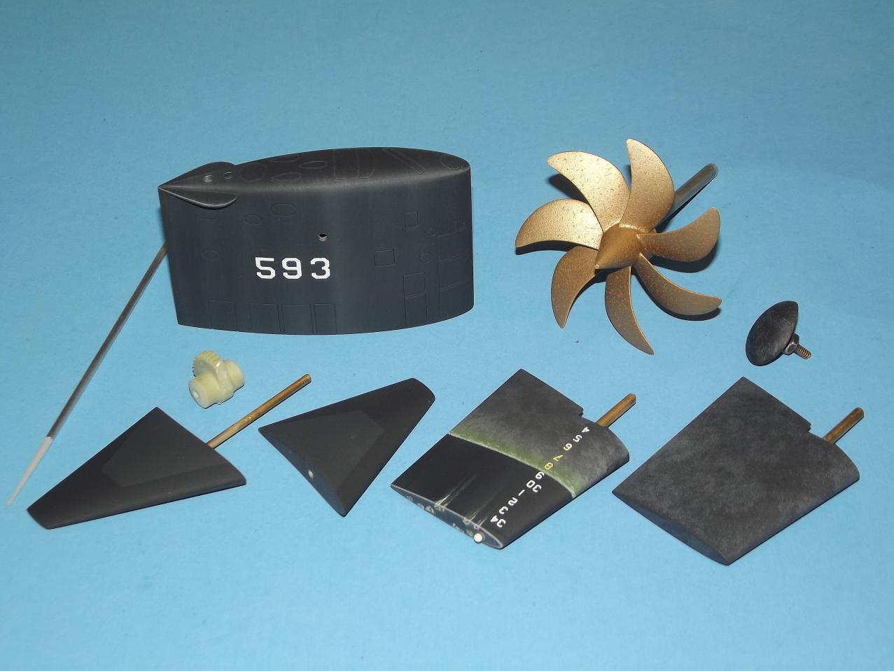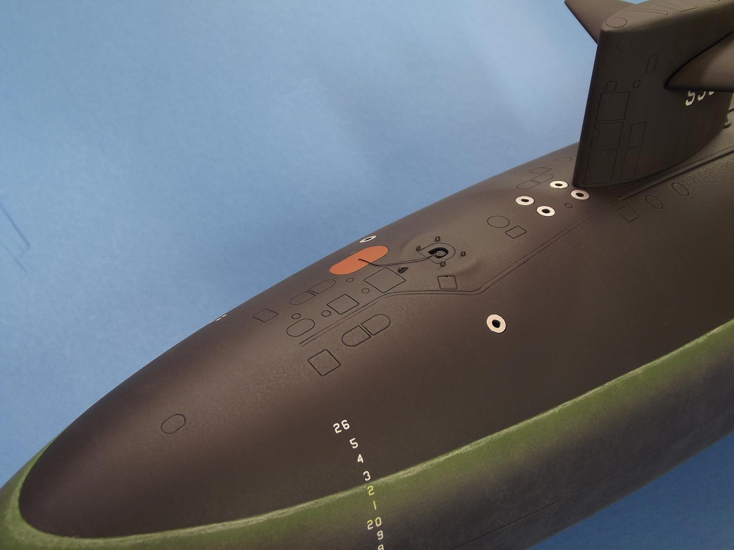 I have spent a fair amount of time deliberating about the shape of the boxy foreplane housing. As far as I know this is the only model of Resolution with the box structure rather than the continuous flowing lines and the brief hiccup of the foreplane shaft extending out from the hull. This box design really does break up the flow of the structure as it receeds back. That has thrown my perception a little.