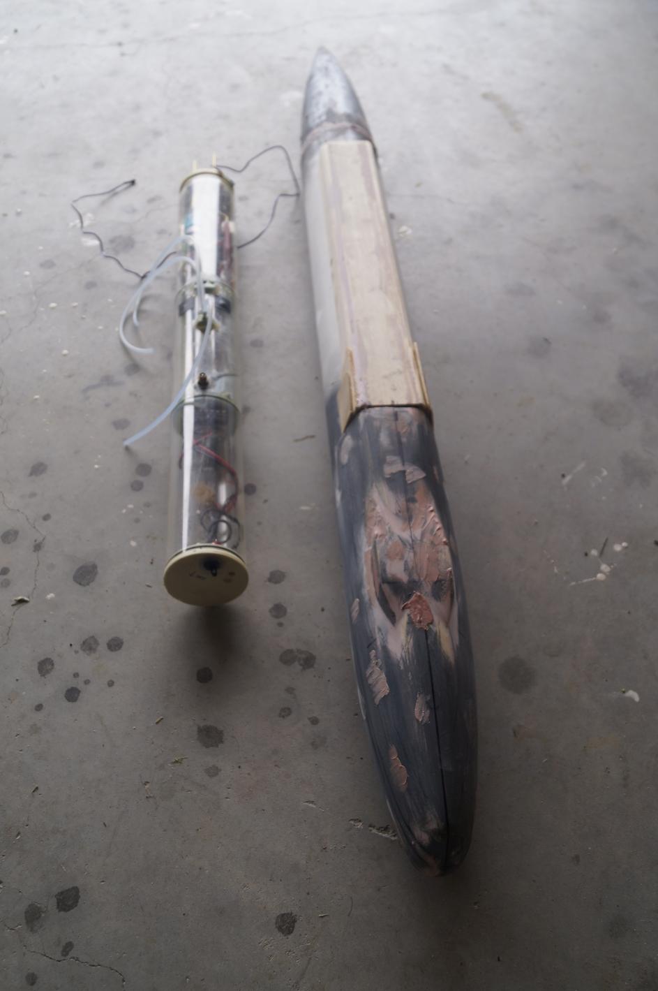 The missile deck would generally need less work shaping than the bow. It is basically rectangular and long. The front end would have a subtle curve as it meets a slightly wider front. The blocks glued on the sides of the missile deck and the front would facilitate this. The Back of the missile deck would simply be comprised of several 12 mm pine profile blocks that would be traced from the back of the missile deck and the curve of the top of the hull (pvc pipe) then they would be cut and reduced for the next one and so forth untill they reduced till they would blend in with the rear hull. It would simply be a case of sanding these down.