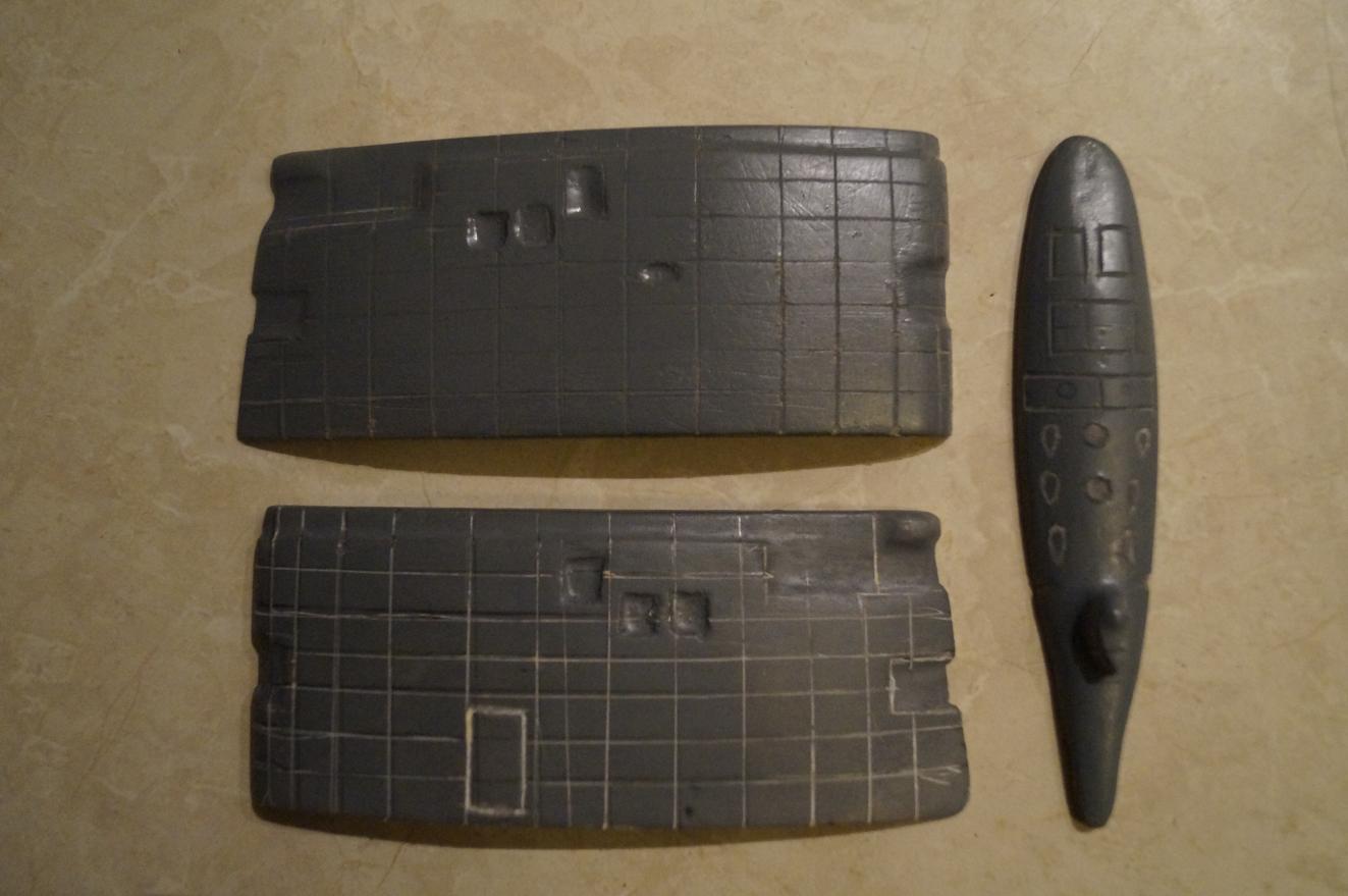 The rear missile deck is simply made of small profile pieces glued end on end and getting smaller. I think i 've already covered this. I intend on making the mould of the missile deck whilst it is fixed down to the hull and the edges of the mould will actually be where the missile deck would theoretically intersect with the hull. I'll use clay around the edges where the long groove occurs. (Is there an official name for this?)