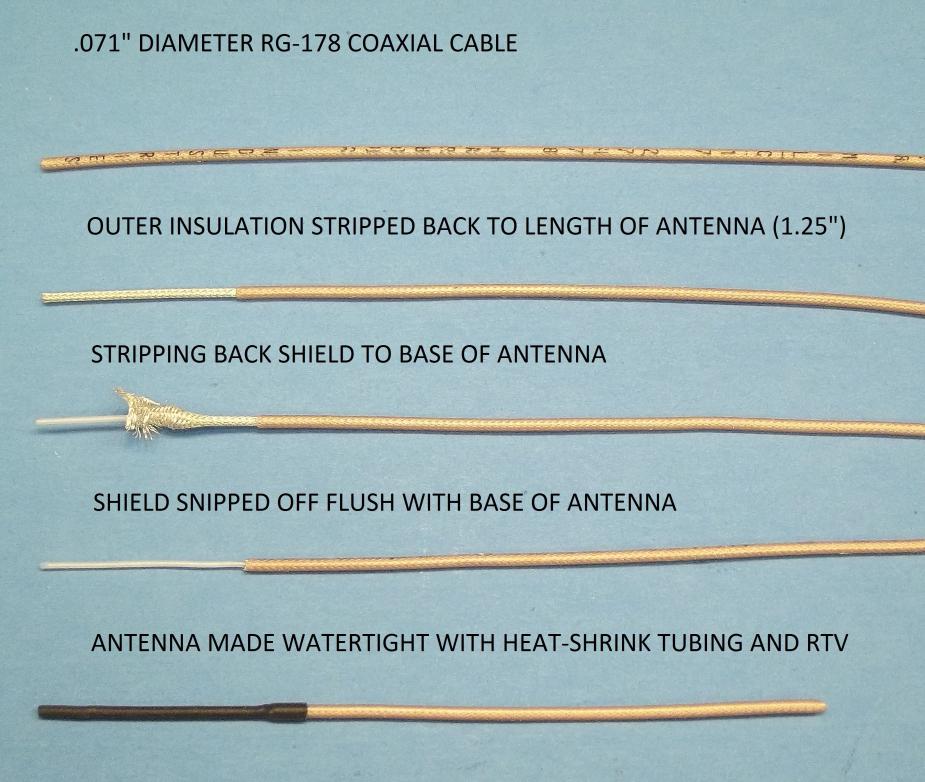 FORMING THE ANTENNA FROM THE COAXIAL CABLE CONDUCTOR OK, you've made up the dry side of the coaxial cable to the receiver; you've run the wet side of the coaxial cable through the motor-bulkhead watertight gland; and you've worked out where the eventual receiver antenna will be situated up atop the sail -- either sitting up high or hidden within an RF transparent structure such as a periscope tube, periscope head, or mast fairing.