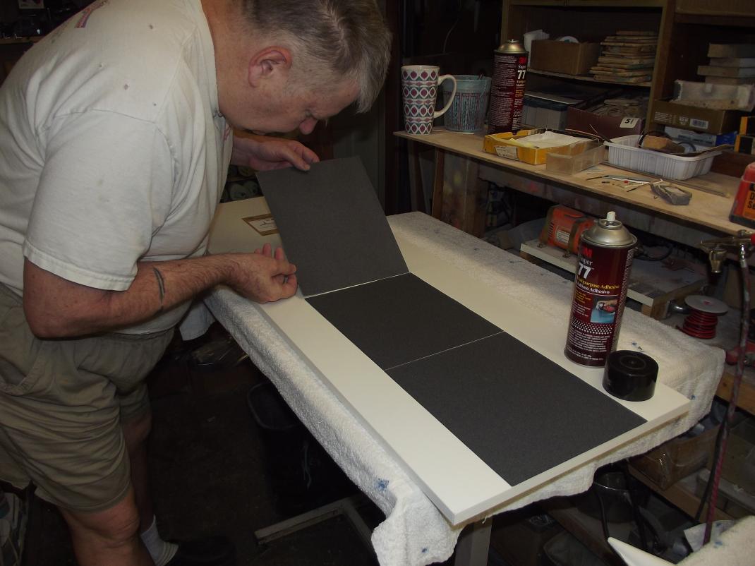The surface of the board is my reference plane (datum plane) off which all vertical measurements and tool heights are set. I strap the model down with sail-twine (the wax impregnated weave will hold a knot once cinched down). Under the hull, glued to the mold board, is sandpaper which keeps the model from sliding around.