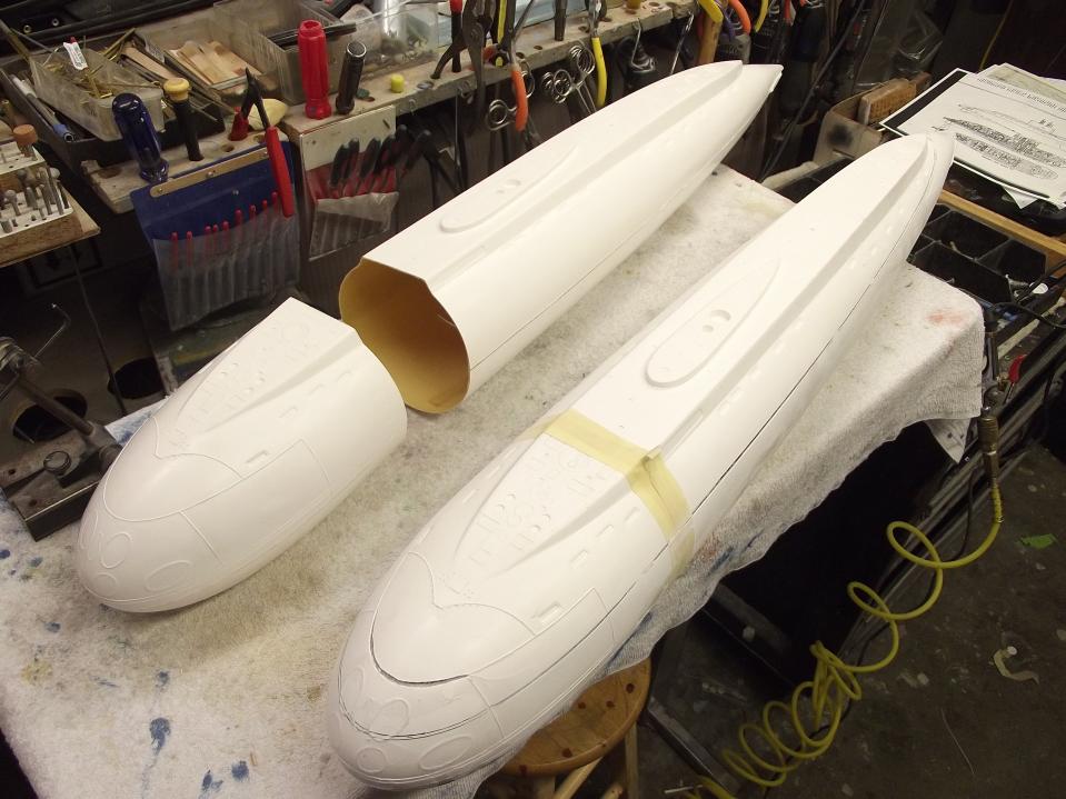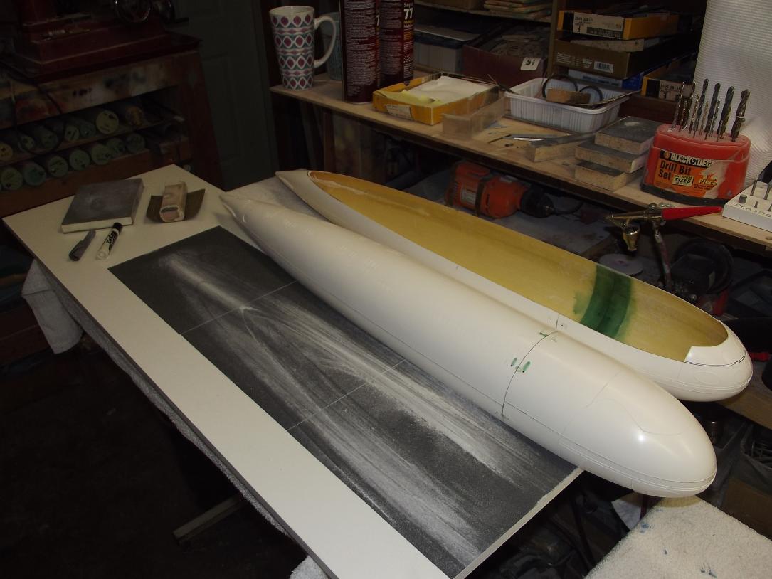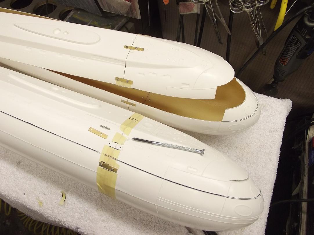 They've been sitting here while I work to get out from under back-orders. This week I played hooky from the production work and set about the task of making an equatorial cut at the waterlines and gluing together the bow and stern pieces. What I got with the two kits were assembled forward and after hull halves with the radial break near the bows. Huh! Them inscrutable Chinese, ****ing with me again! We'll fix THAT!