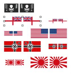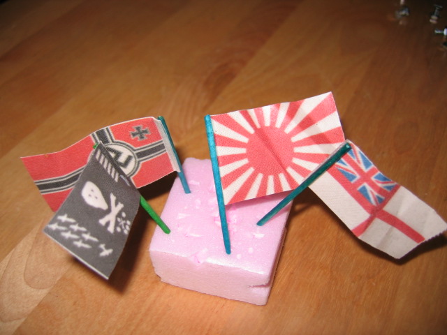 I can make templates of flags scaled to your boat. Just let me know which flags, and which scales and I'll print up some templates etc. I'll make these available so as long as you have an iron, you can make your own.