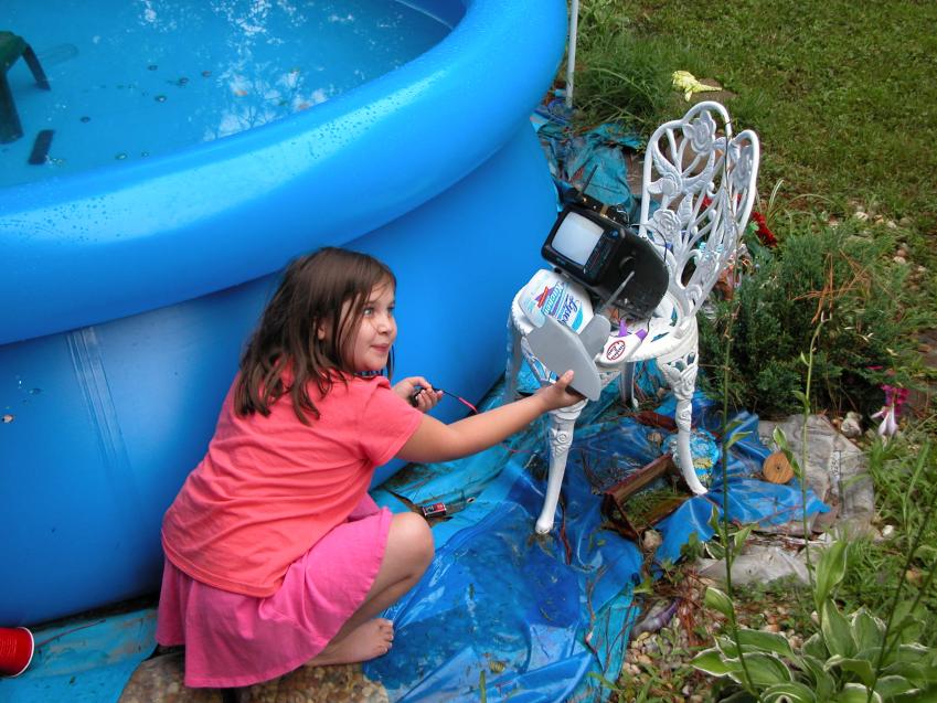 Not that Rose is checking the video feed from the remote camera with a small TV monitor -- you would substitute the virtual goggles, Mark.