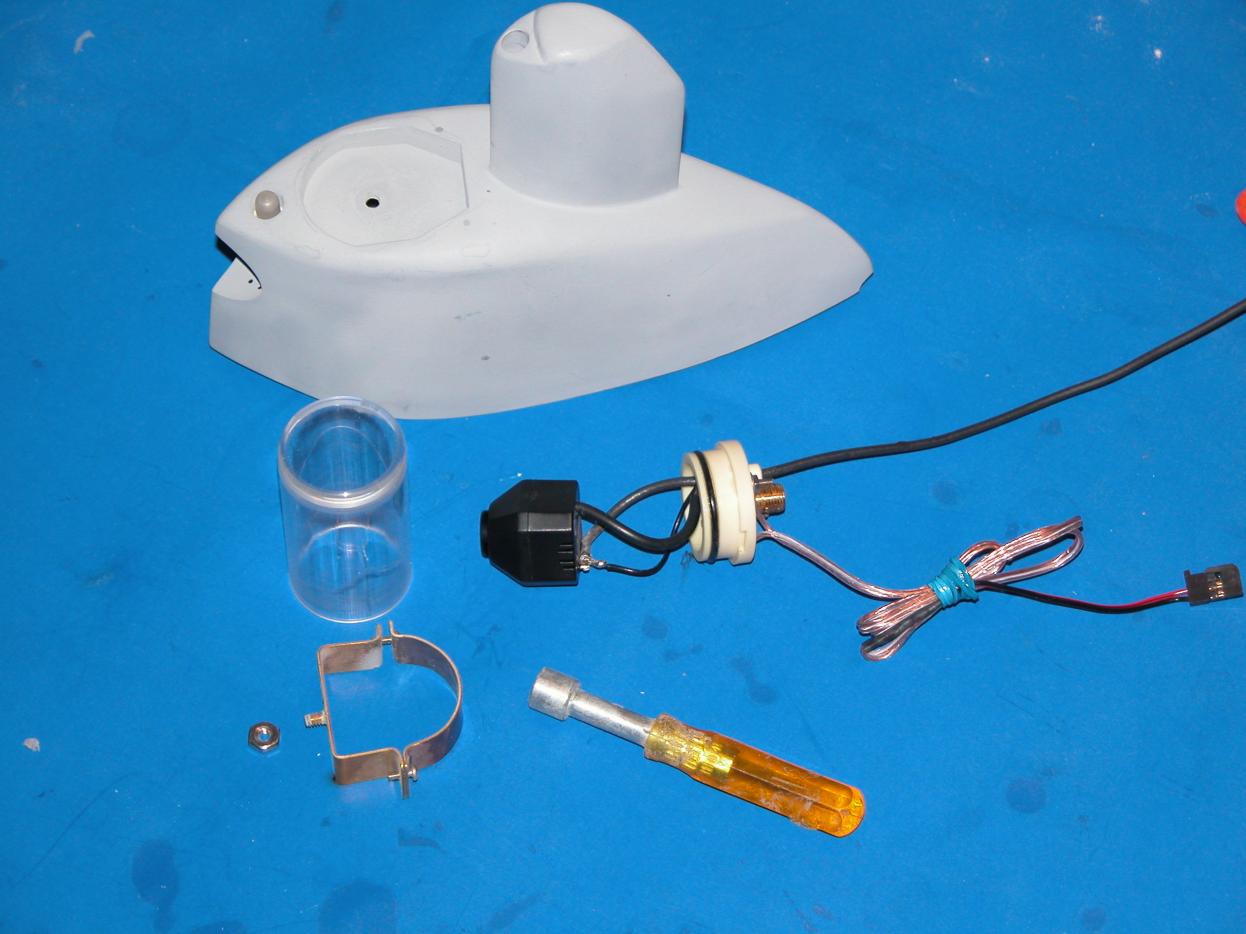 Here is my installation of the camera within the 1/16 Wallace Kits KAIRYU Suicide submarine. The little Swann camera-transmitter is enclosed in a little 1.25" Lexan cylinder, its antenna running up within the single periscope. The camera lens peeks out through the forward observation dead light at the leading edge of the sail.