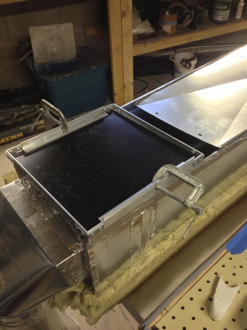 My frame is a foot square. Simple G clamps and more angle kept the plastic sheet in place. Once this was rigged, I blanked off my vacuum chamber to just give me enough space for the frame, and fired up the gas heater.