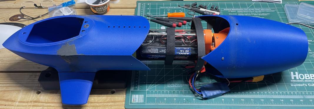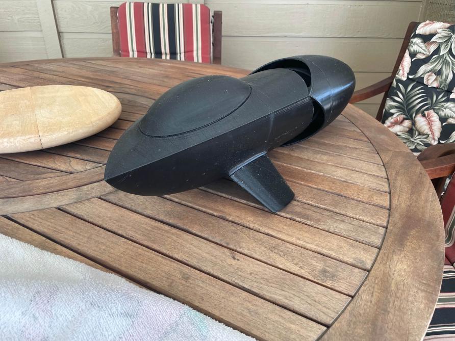 Still a work in progress, played with a few iterations of ballast system. I keep trying to make things harder than they need to be (Y?). Initially wanted everything in the wet except the receiver and ESC's. Have come full circle to where only the drive motor and servo's are in the wet so a lot of the internals are changing. In the mean time getting used to resin printing - first up the canopy. Check out the before and after polishing and sealing for clarity. next up resin printing the WTC - its an odd shape to do and needs to accommodate threaded inserts. as i build this keep seeing things to fix to make it easier to print, assemble, etc...