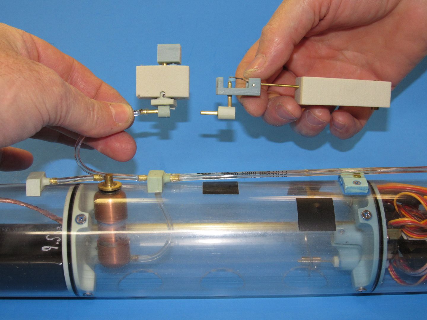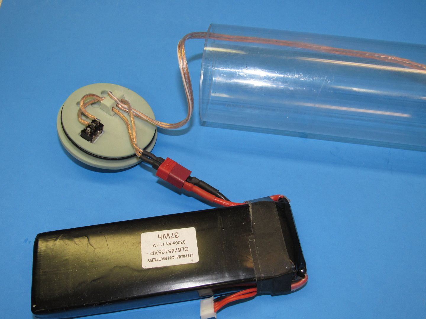The blue wire I was talking about seems to be the battery connector that goes through the brass tube. Yours is some sort of yellow-ish color, hence the confusion. But I have everything set up here and it all seems to work, except that blue wire which I've isolated as the problem. I've already gotten it through the tube but when I plug the battery in, the electronics section doesn't get any power. I don't really know why this is happening, because everything works then I plug it directly into the electronics section. Do I have it in right? The wire with the white strip in it is positive, and the regular wire is negative right?Comment