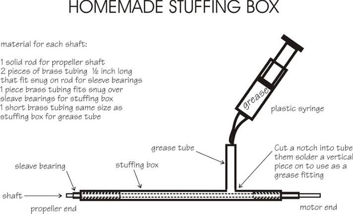 Sleeve the propeller shaft(s) in a 'stern tube' that is glued to the hull. The fit between propeller shaft and stern tube is a close, non-interference fit. Lubricate with thick grease.