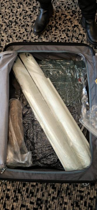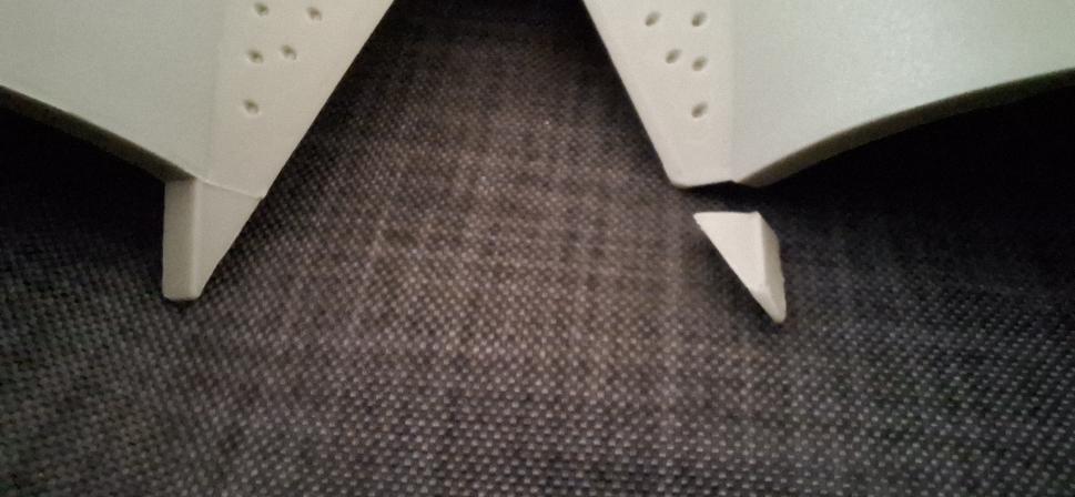 Got home last night. Just unpacked my suitcases this morning. Inspected everything for damages. A little piece broke off. Luckily I found it wedged in the suitcase's zipper.Nothing a little Tamiya Extra Thin cement can't fix.