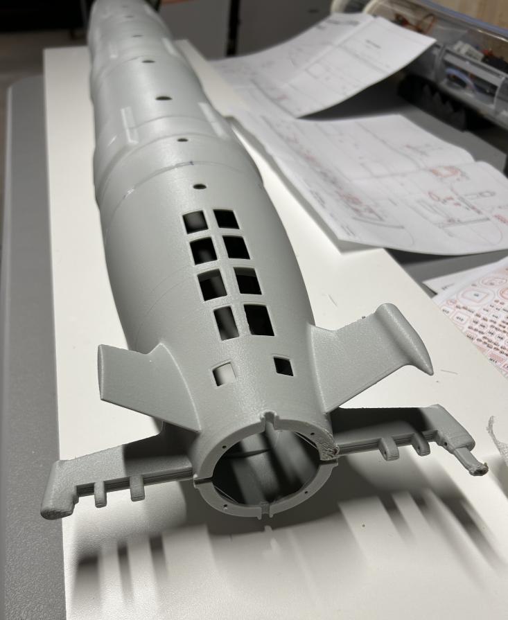 PS I did find a reference stating “the port anhedral has a hydrogen diffuser pod and the starboard anhedral has a towed array tube” . The locations referenced of port and starboard do not fit the port side only depiction shown on this model. Perhaps the description referred to a block I or block II? In any event it puts me a little closer to the answer