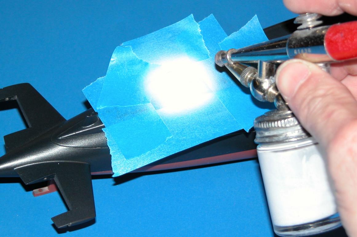 2. Not all blue masking tape has the same tack! I use the 3M stuff. Regardless, don't employ the edge of the tape as it comes off the roll -- too ragged! First place a strip of the tape down on some plastic sheet and cut your strips, circles, whatever on the board. This produces a very clean, crisp edge that will prevent paint run-under and ratty looking paint demarcation lines.