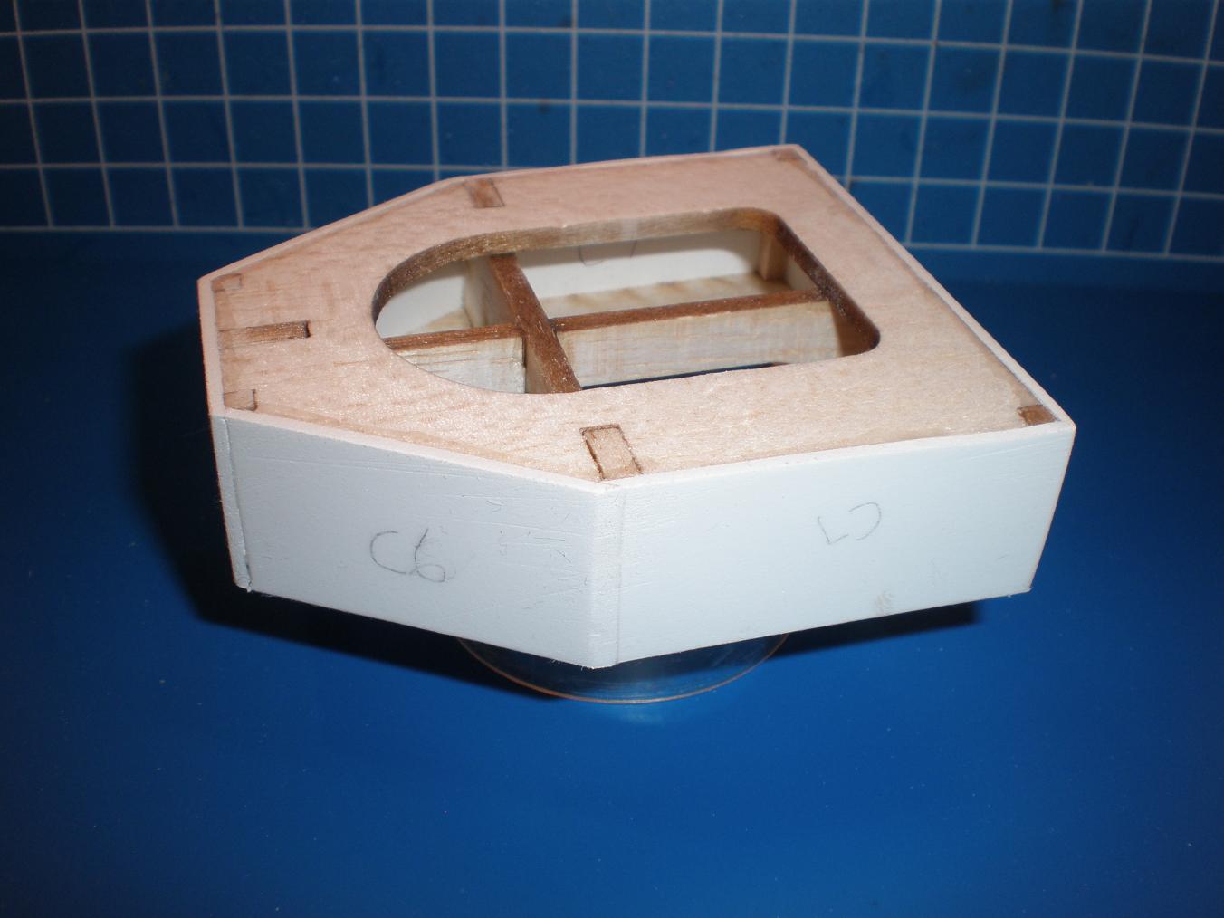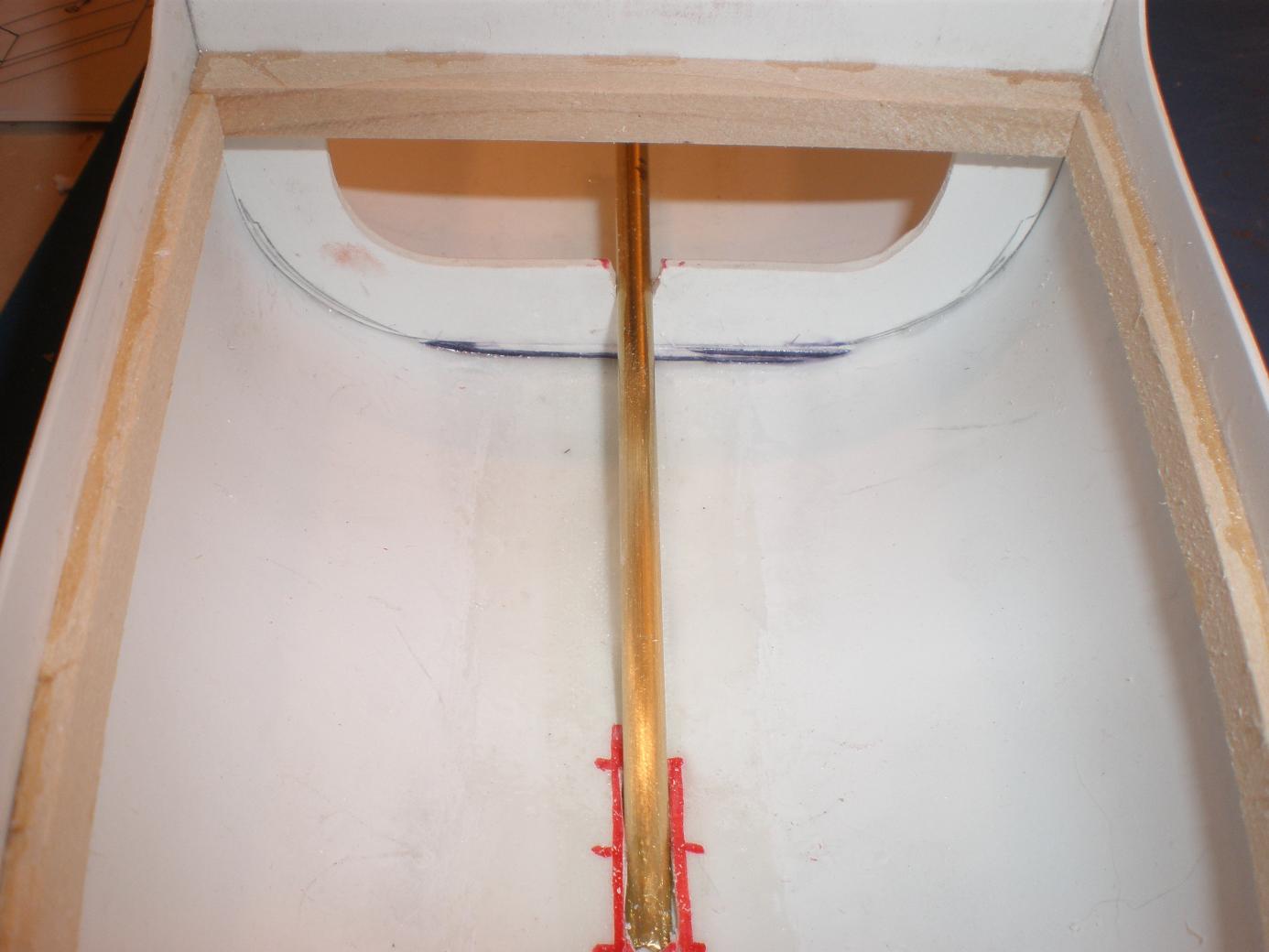 Hull has been duly slotted to accept the stuffing tube inside the hull. The "fit" of the assembly,