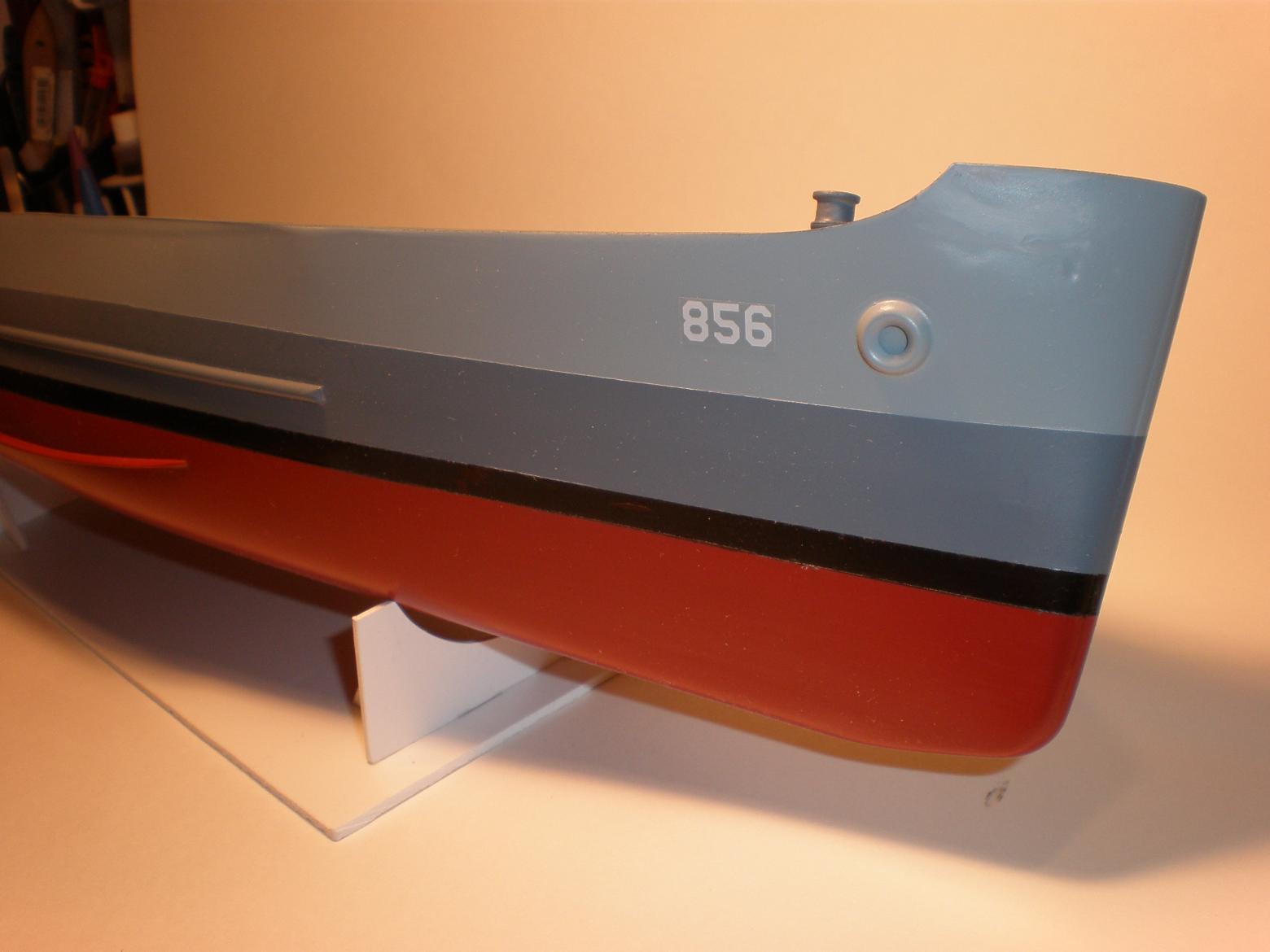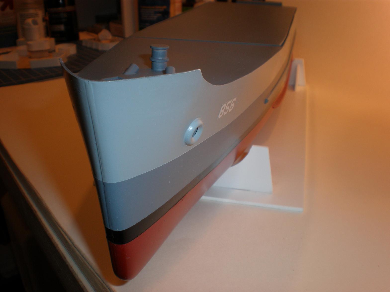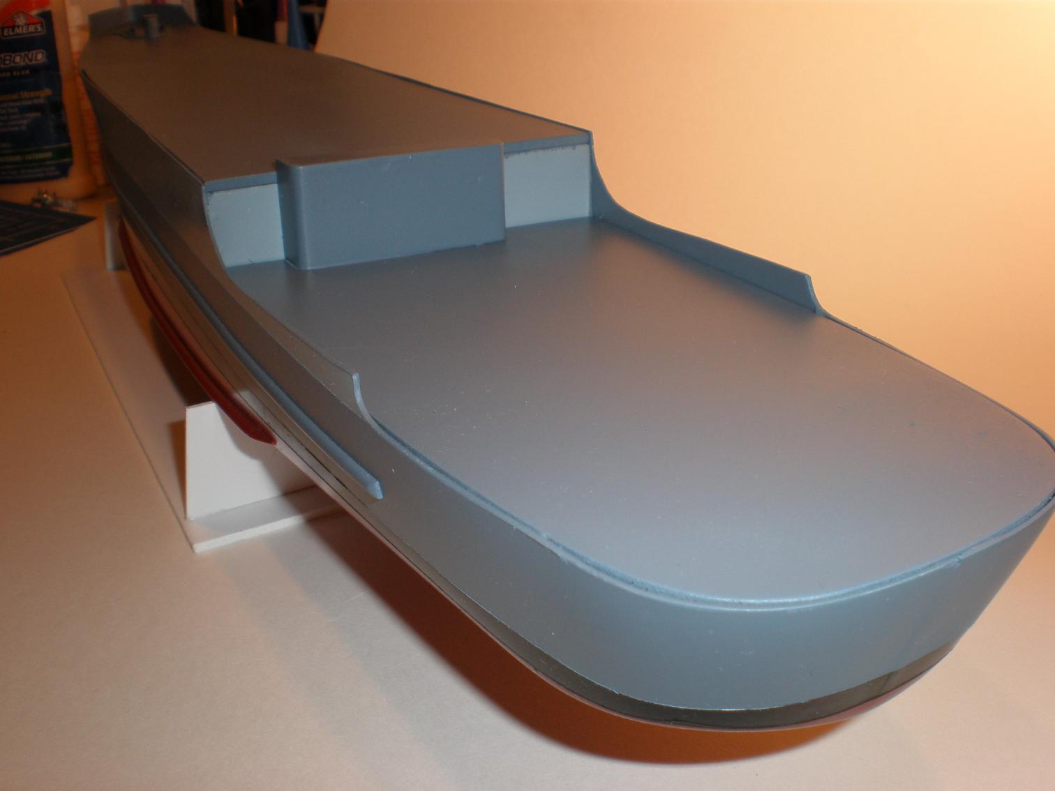 Hull is painted and needs a bit of cleaning up and a good coat of matte clear, but not until her superstructure