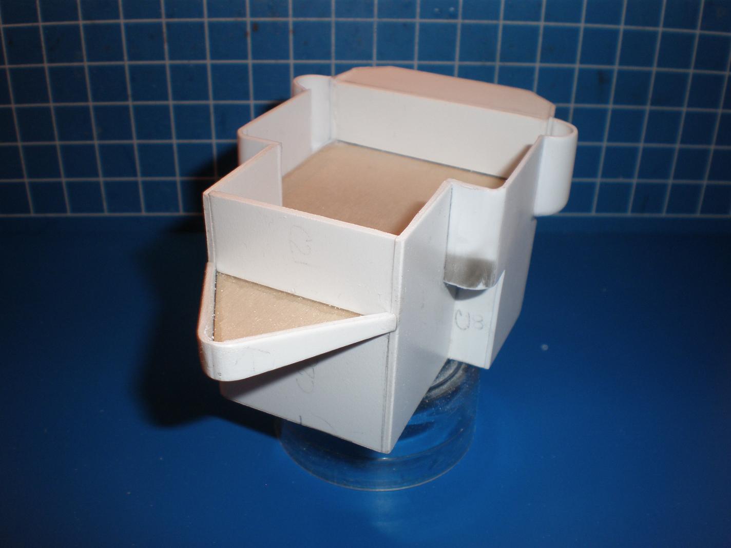 I managed to "sandwich" the stuffing tube between the expanded a.b.s. keel parts, which
