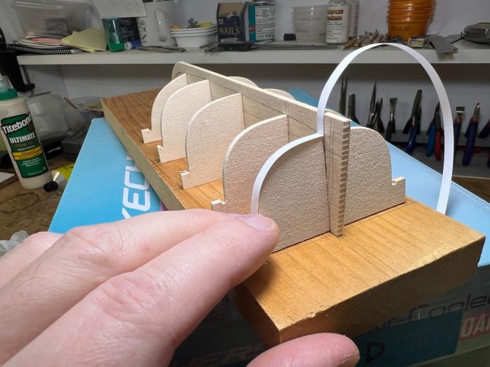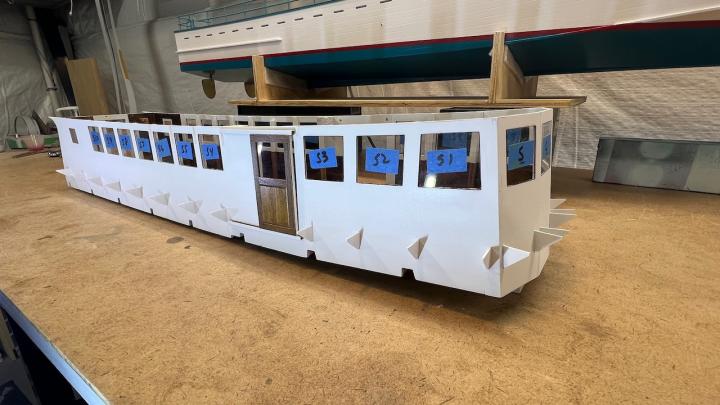 Glueing the railing in place.