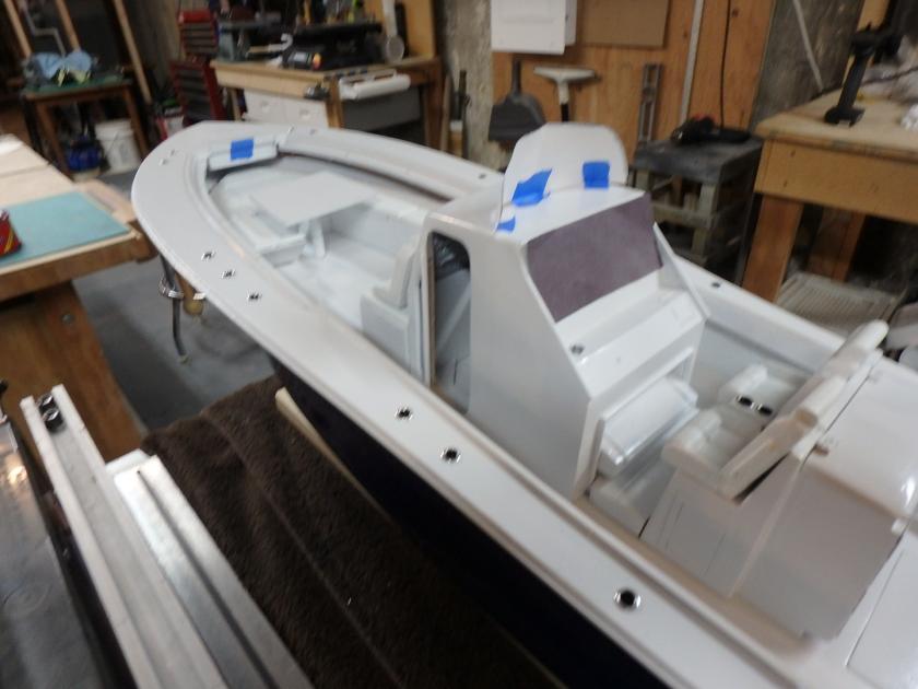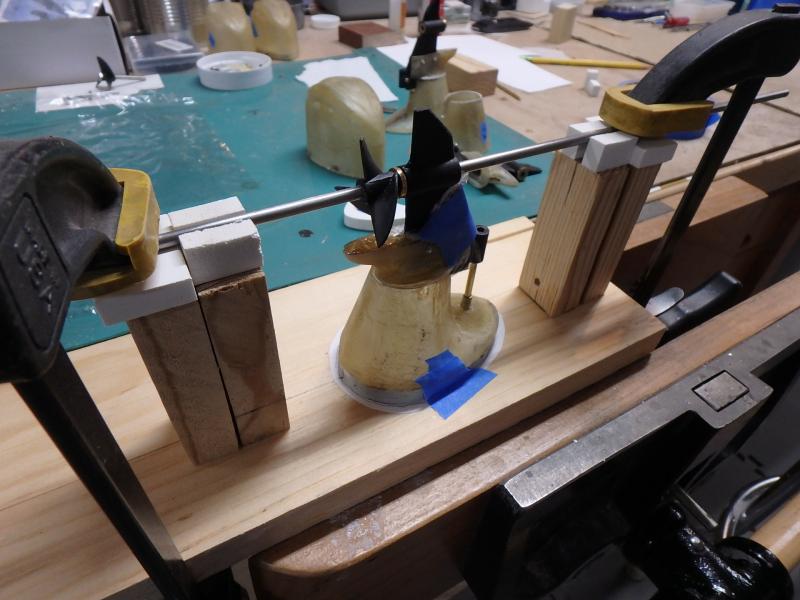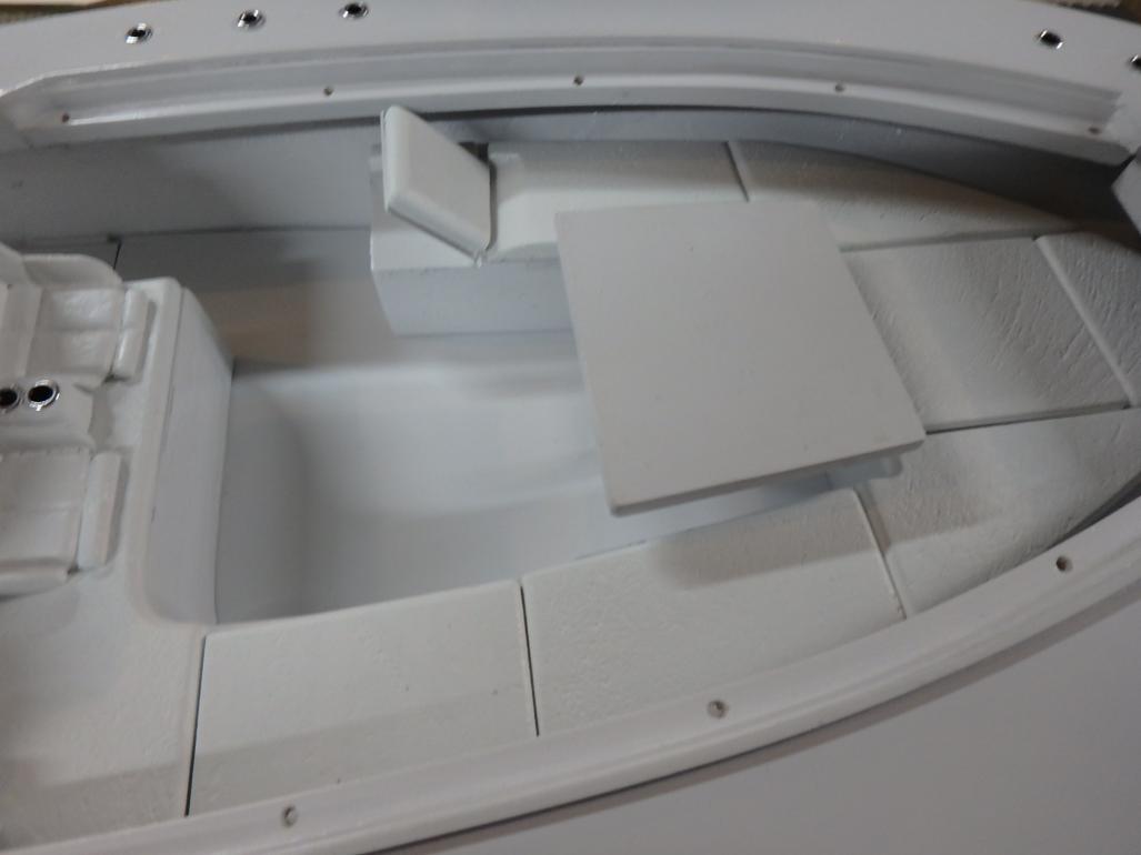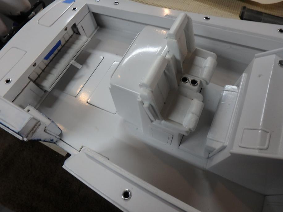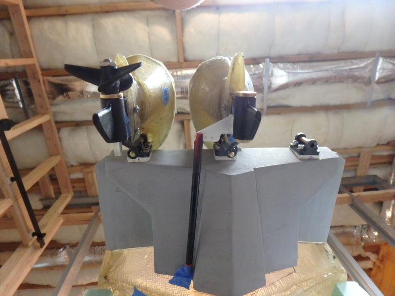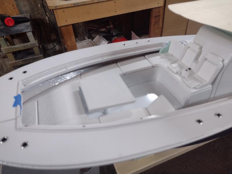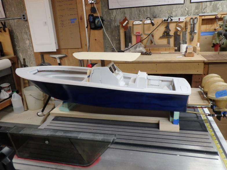 I started collecting documentation and drawing up the plans in 2019...She is built of fiberglass and Aspen plywood. Her power plants are to resemble three Yamaha F300 and are my own design utilizing modifies Krick Z-drives...shaft driven by two brushless motors. The center outboard is a dummy and initiates the steering via a Sullivan plastic cable ( connected below the waterline) then it imparts steering to the remaining port and starboard motors. I have floated the boat and tested the propulsion -the complete build can be found :