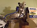 WOF stands for wood over foam. This is truly a scratch build as you purchase a set of plans designed by Jerry Dunlap. You then purchase the hobby grade 1/32", 1/16" plywood and pink or blue foam. You then cut out the pattern shapes and trace around them on the wood and cut them out. Then you epoxy it to a piece of foam and trim to fit and then on goes another piece. That is an over-simplifacation but you get the idea. I am a K&B fan from way back but for varietys sake I decided to try the new(back then) OS 3.5 outboard. The advantage to an