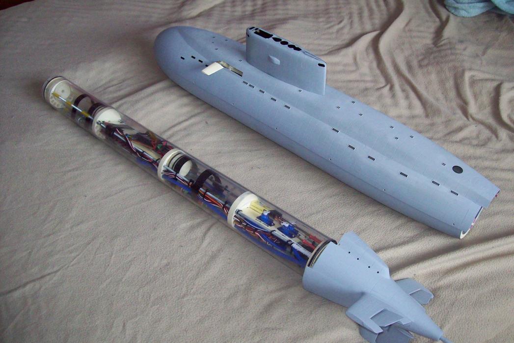I am moving into a smaller apartment and some of my bigger projects have to go. I selling my new rpmtech kilo rc submarine. All of the hard work has been done. All that is needed to complete is to trim the model and paint it. This model is absolutely not for a begginer and does not come with assembly instructions. You must be familiar with model subs and ballasting and trimming experience is a must. This model has hydraulic retractable dive planes and scopes controlled by a pump. It is equiped with 2 piston ballast tanks which can be controlled together or 1 at at a time for precise underwater trim changes. A complete electronics package is included : Esc, adc, batteries, level keeper with failsafe, ballast tank controller etc. I have a new wfly 8ch radio which I can sell with the model if you need it. This model costs $1000 without the radio gear. It is an awesome model. Asking $875 shipped to North America.