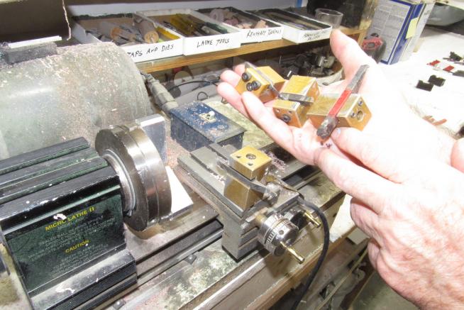 Ready for war! Tools in their tool-holders. One set for the little Taig lathe, the other for my big, nasty, Chinese mini lathe (mini being a relative term!).