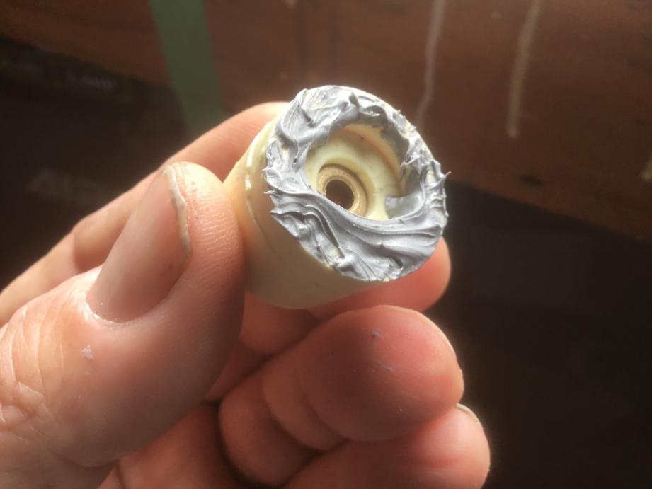 Second photo shows the movable surface in the more conventional position that I would usually have it with the plates in a horizontal position, My concern being that the air will not be able to escape out the sides of the mould as my vent lines only really run up the split surface. Should I be concerned about extra venting lines or is it really in your experience, not an issue? This is how I would prefer to mount the piece as it allows the brass insert to be away from the pouring sprue. It also means I can have the air vents on a easily sandable flat surface rather than on the curved thick end of the foil.