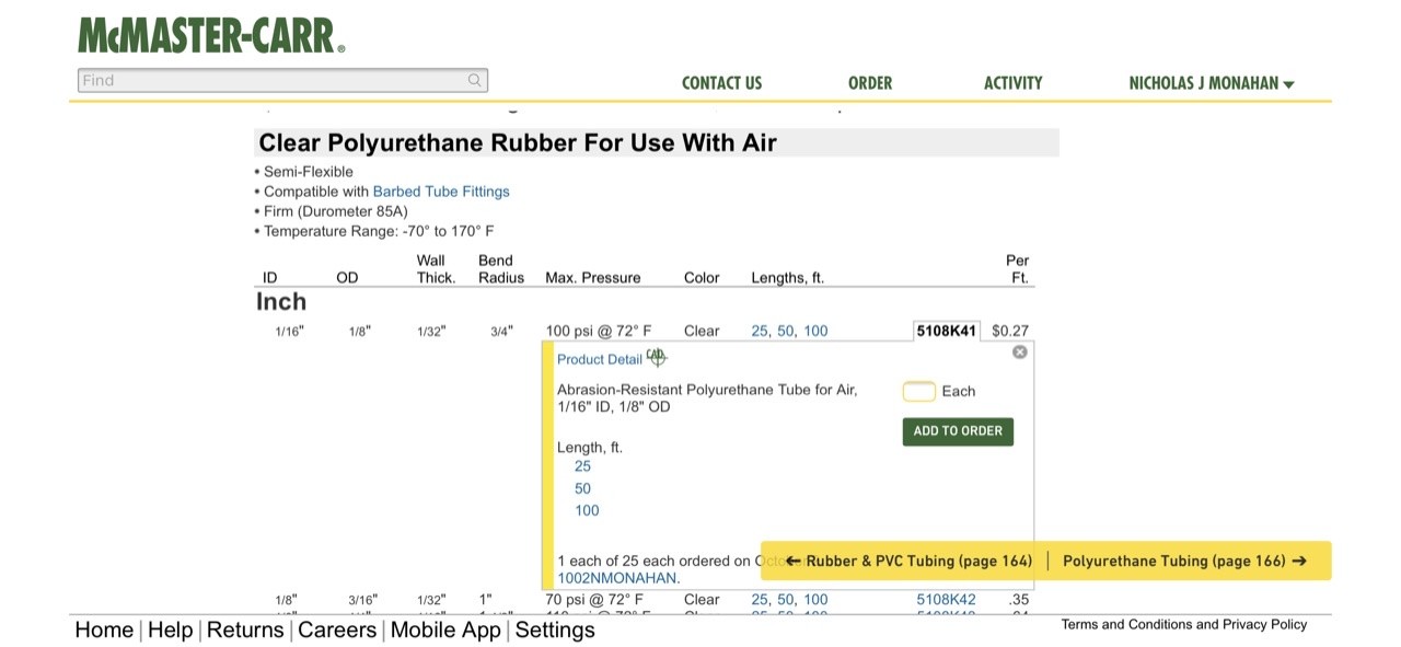 I gave you bad info earlier. It is Clippard that makes the hose clamps and tubing. Take a look at the two photos I’m attaching. The part numbers for the hose from McMaster and the clamps from Clippard.