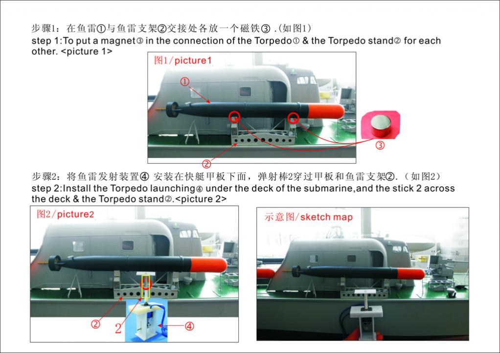 I have two of the arkmodel torpedoes. thers a little bigger than the kit parts and will not go in the tube on the 23 unless you remove the ridges on them. size wise there the same as kit. so I will be doing a kit bash. instructions are the norm??????????? so I will ask for better info. as for batteries that would fit in the kit torpedo head I am thinking heli batteries. smaller but should work fine. any Ideas Dave? I will use these in my UCII and UB88. will be so cool.